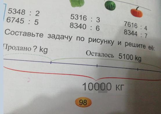 2. На склад завезли 10000 кг удобрений. Через месяц осталось 5100 кг. Сколько килограмм удобрений продали в течение месяца?
