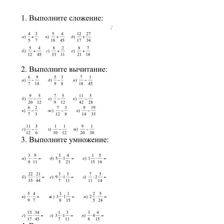 Ответ: 1) а- 1 целая 8/35 б- 91/180 в- 29/90 г- 14/33 д- 1 целая 10/68 е- 97/126