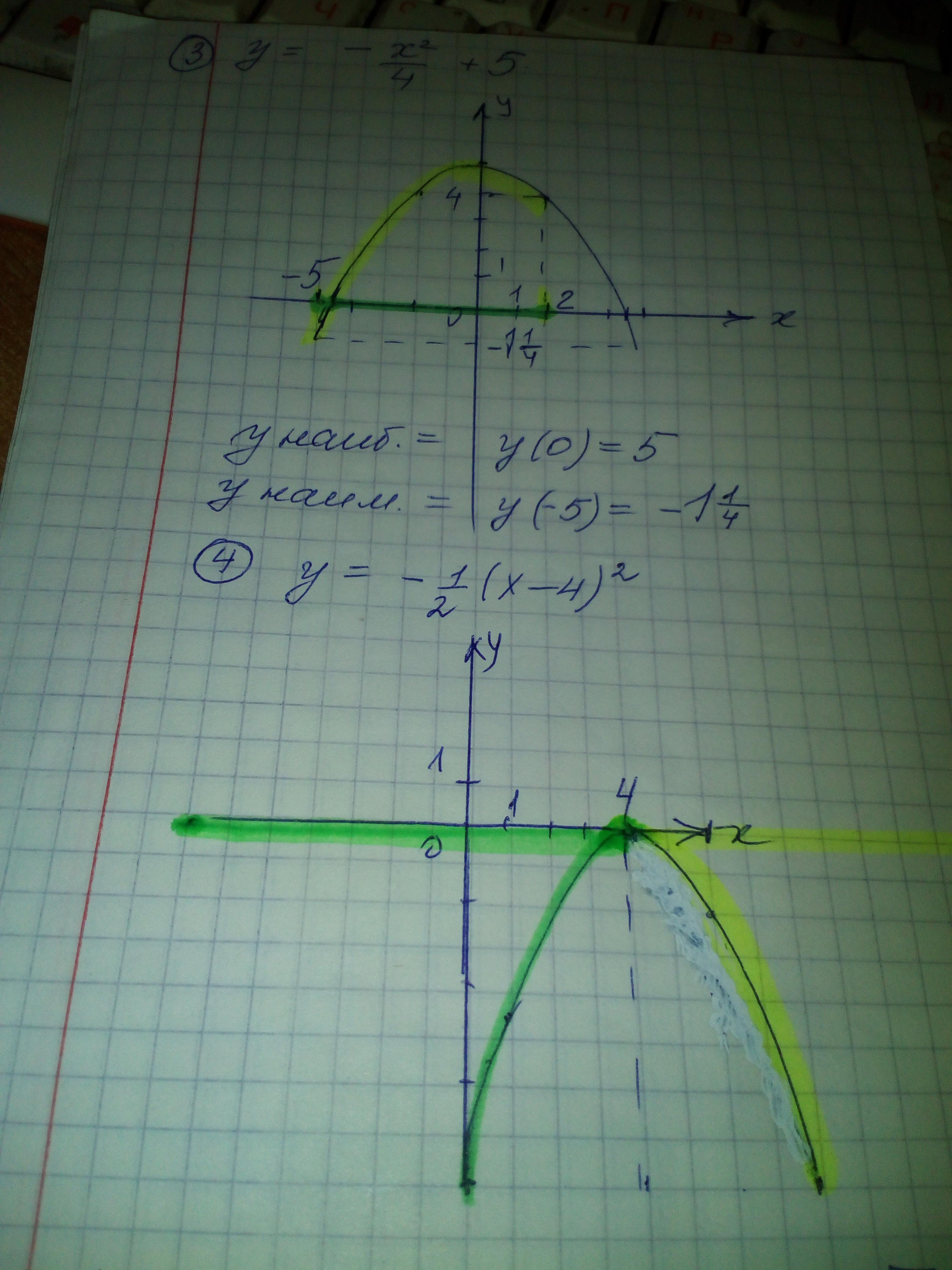 3. Найди наибольшее значение функции «у = -¼x² + 5» на отрезке [-5;2].