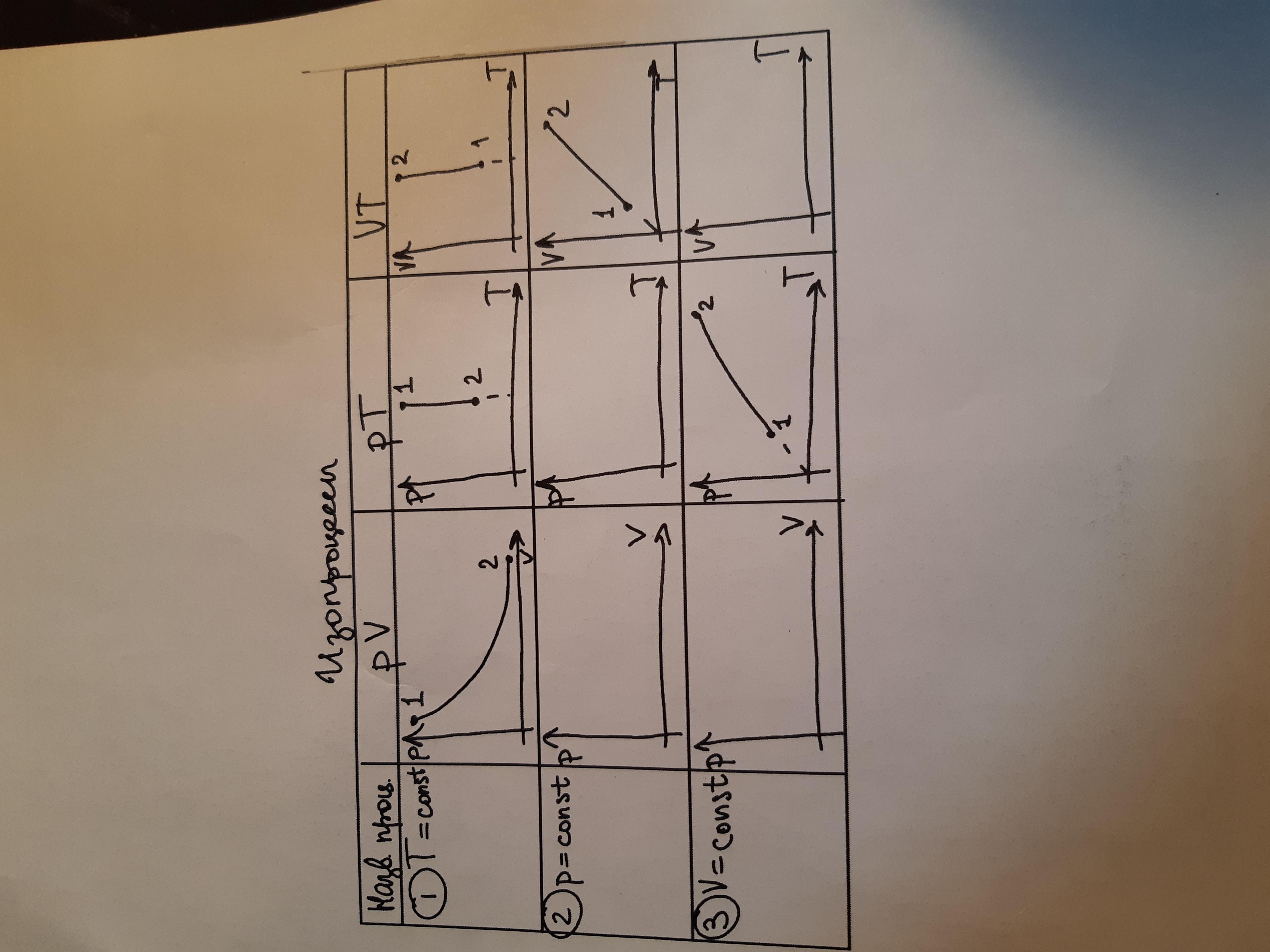 3) график Р от V при V= соnst : рисуешь вертикальную линию от оси с V и ведёшь ее соноправлено с осью P (наверх)