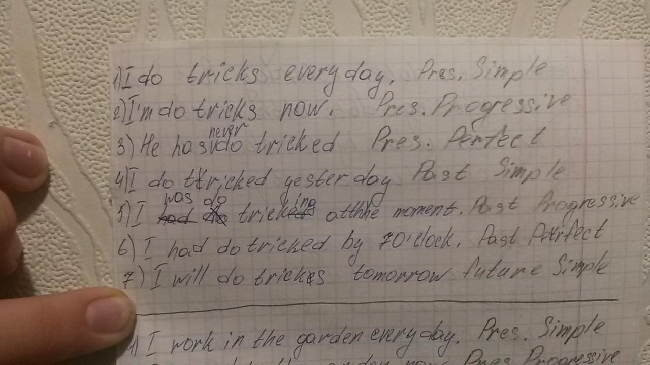 4) I did trick (это сущ) yesterday (-ed окончание глагола)