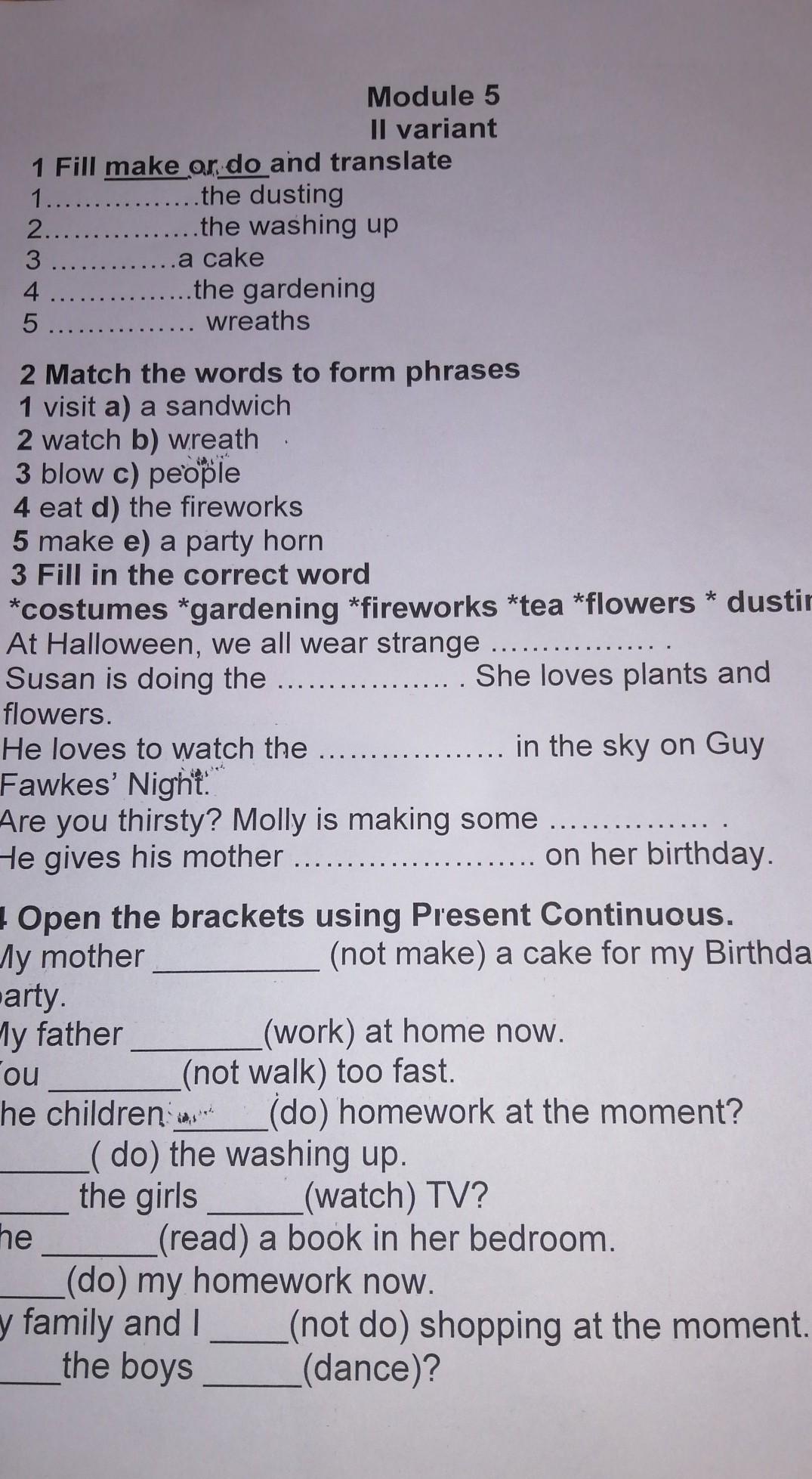 3ex.costumes 2.gardening 3.fireworks 4.tea 5.flowers