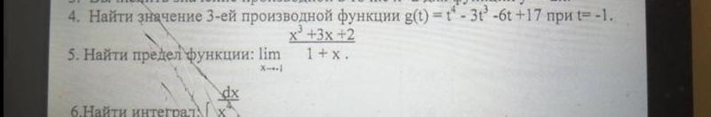Найти значение 3-ей производной функции g(t) = t^4 – 3t^3 – 6t + 17 при t= –1.