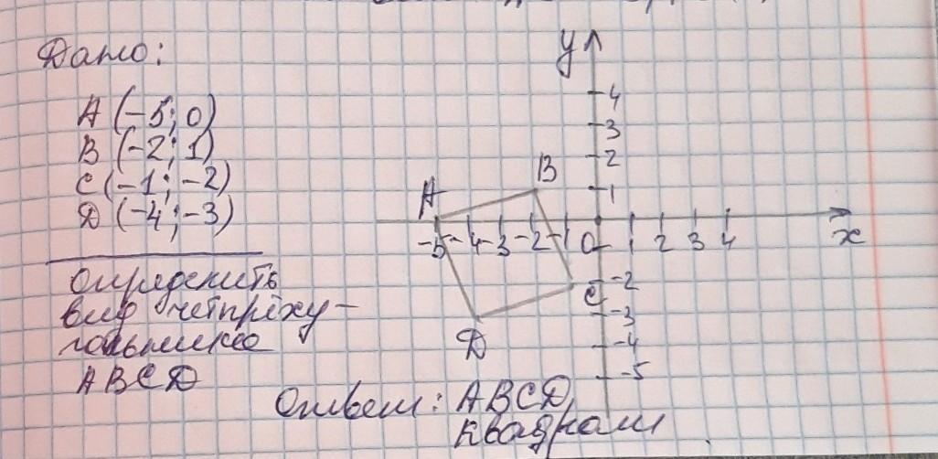 нарисуй в тетради координатную сетку по клеточкам и обозначь точки,увидишь