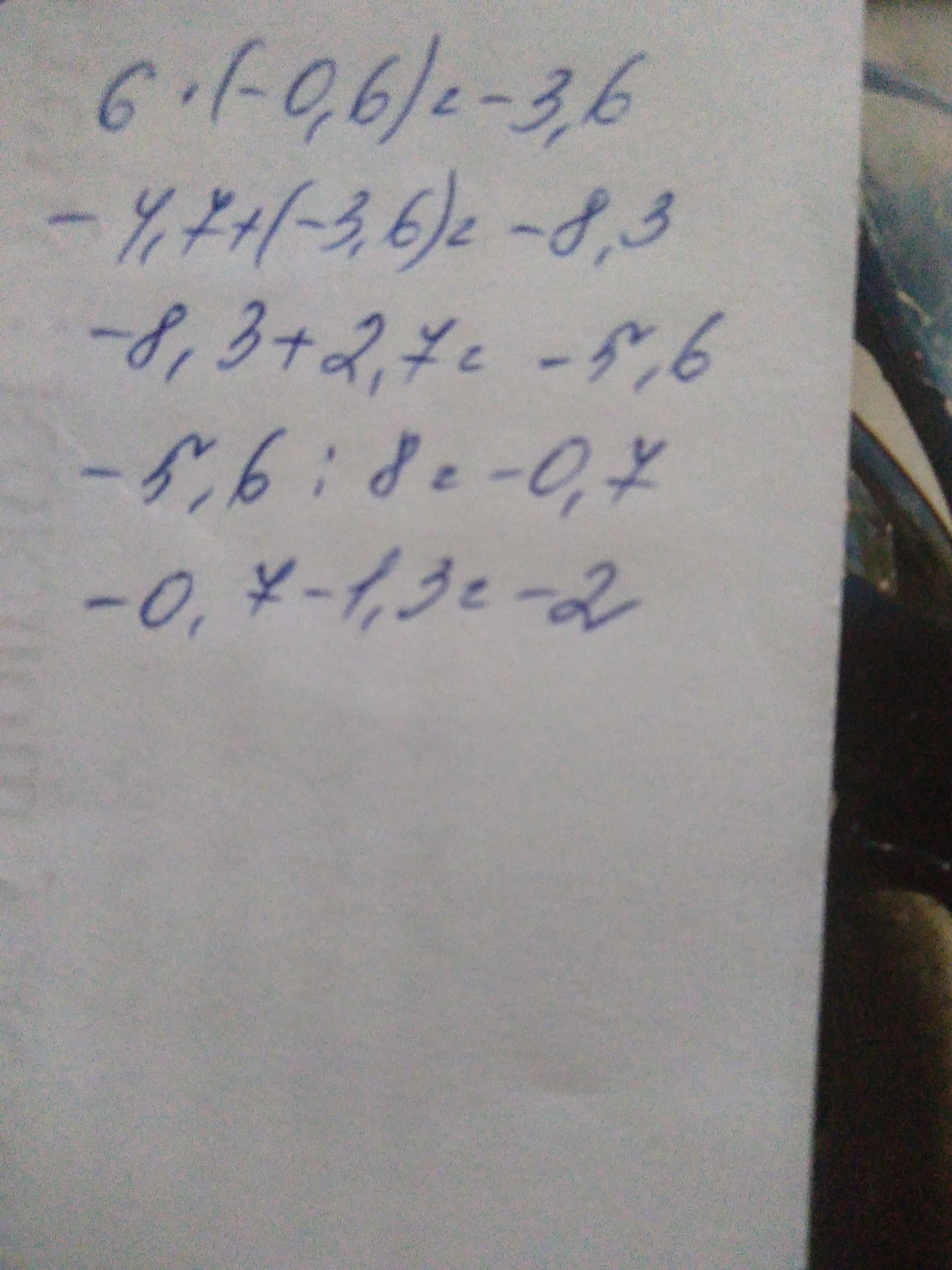 Помогите пожалуйста найдите значение выражения ❤❤❤❤(-4,7+6×(-0,6)+2,7):(+8)-1,3