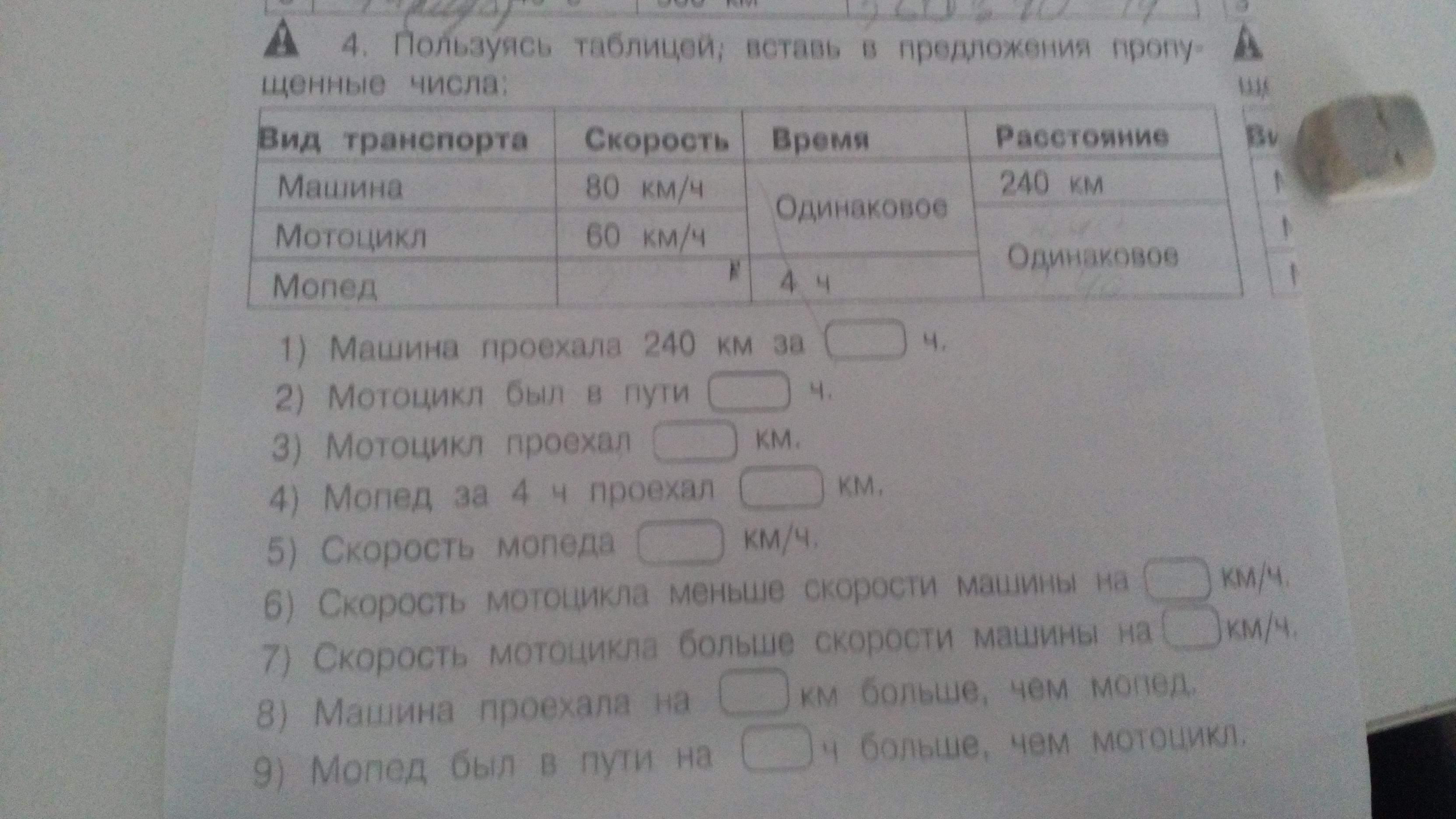 4) По условию мотоцикл и мопед проехали одинаковое расстояние.