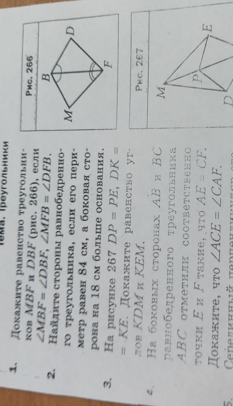 3. (тр. треугольник) тр kdm=тр kem, потому что тр dpk= тр kep (pk общая сторона dp=ep и dk = ek по условию). Равные треугольники - равные относительные углы.