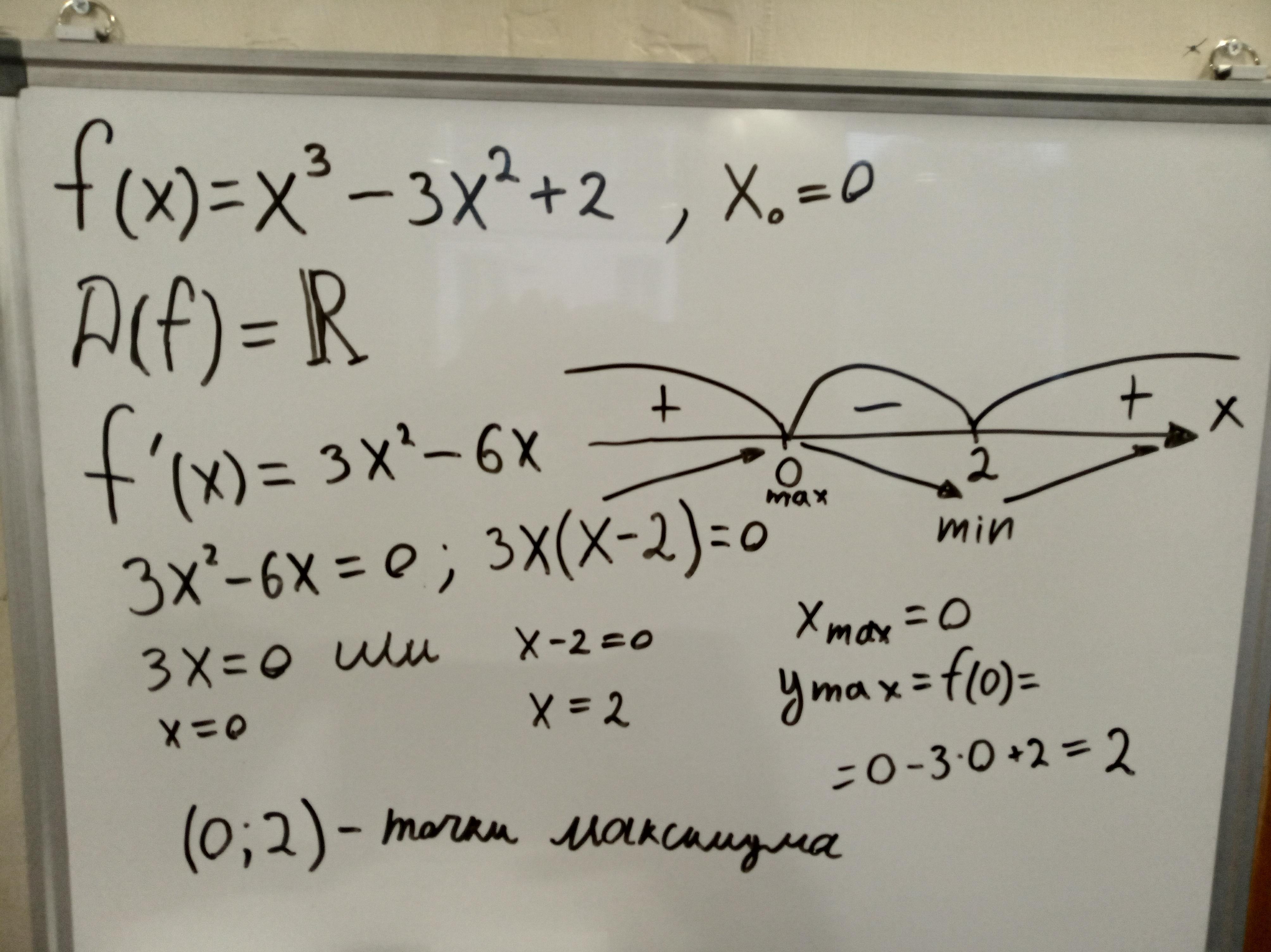 F(x) =x^3-3x^2+2 в точке x=0