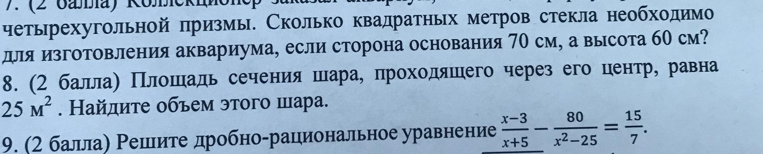 сечение шара плоскостью есть круг, площадь которого равна πr²=25