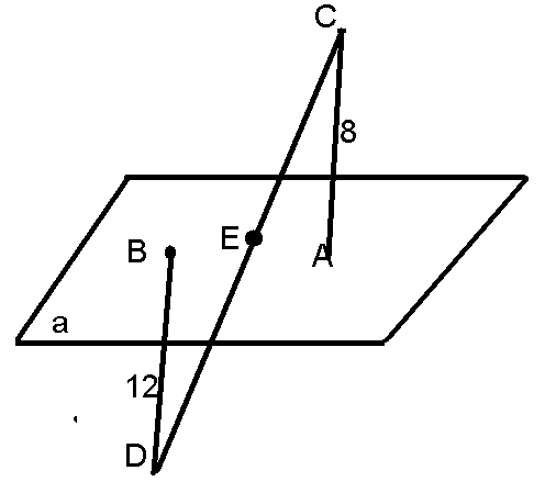 Aпринадлежит(плоскость a). Bпринадлежит(плоскость a). AC||BD. AC=8. BD=12. AB=6 E=DC∩a Найдите длину отрезка AE