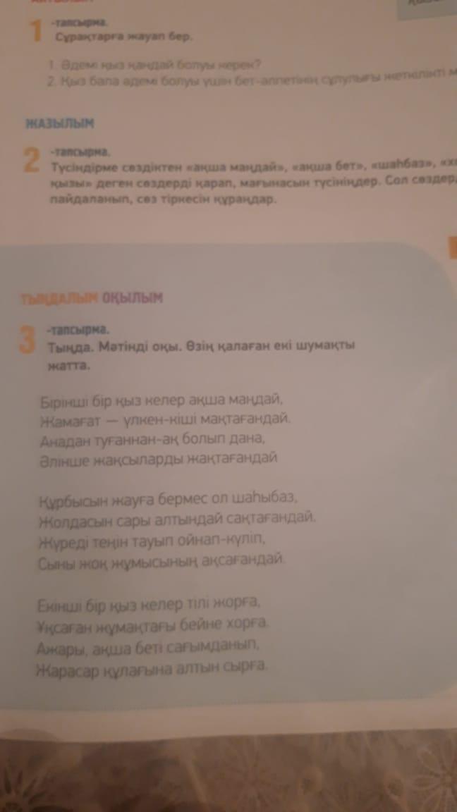 У меня к вам вопрос вы делали это " Өлеңнен əр қыздың сипаттамасын тауып , сызбасын толтыр "