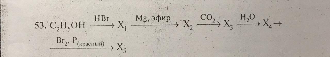 3) CH3CH2MgBr + СO2 --> CH3CH2COOMgBr (x3)