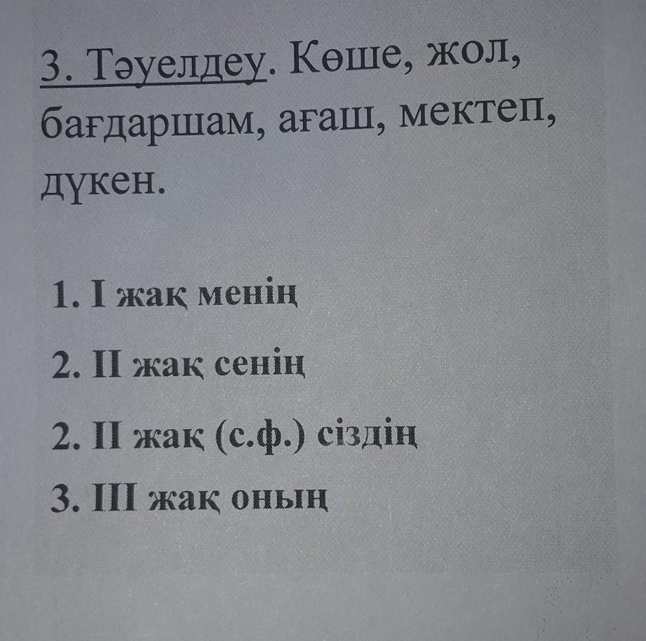 - сіздің көшеңіз, жолыңыз, бағдаршамыңыз, ағашыңыз, мектебіңіз, дүкеніңіз