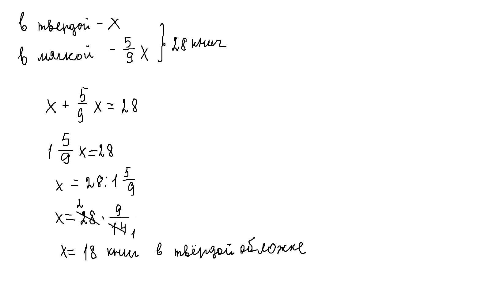 на полке 28 книг ,причём в мягкой обложке составляют 5/9 числа книг в твёрдой. Сколько книг в твёрдой обложке находится на палке ?