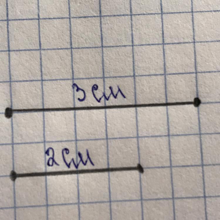 Начертите два отрезка один под другим так, чтобы нижний отрезок был короче верхнего.Измерте и напишите длину отрезков.