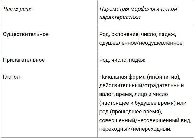 На рисунке представлены критерии по которым осуществляется морфологический разбор слова.