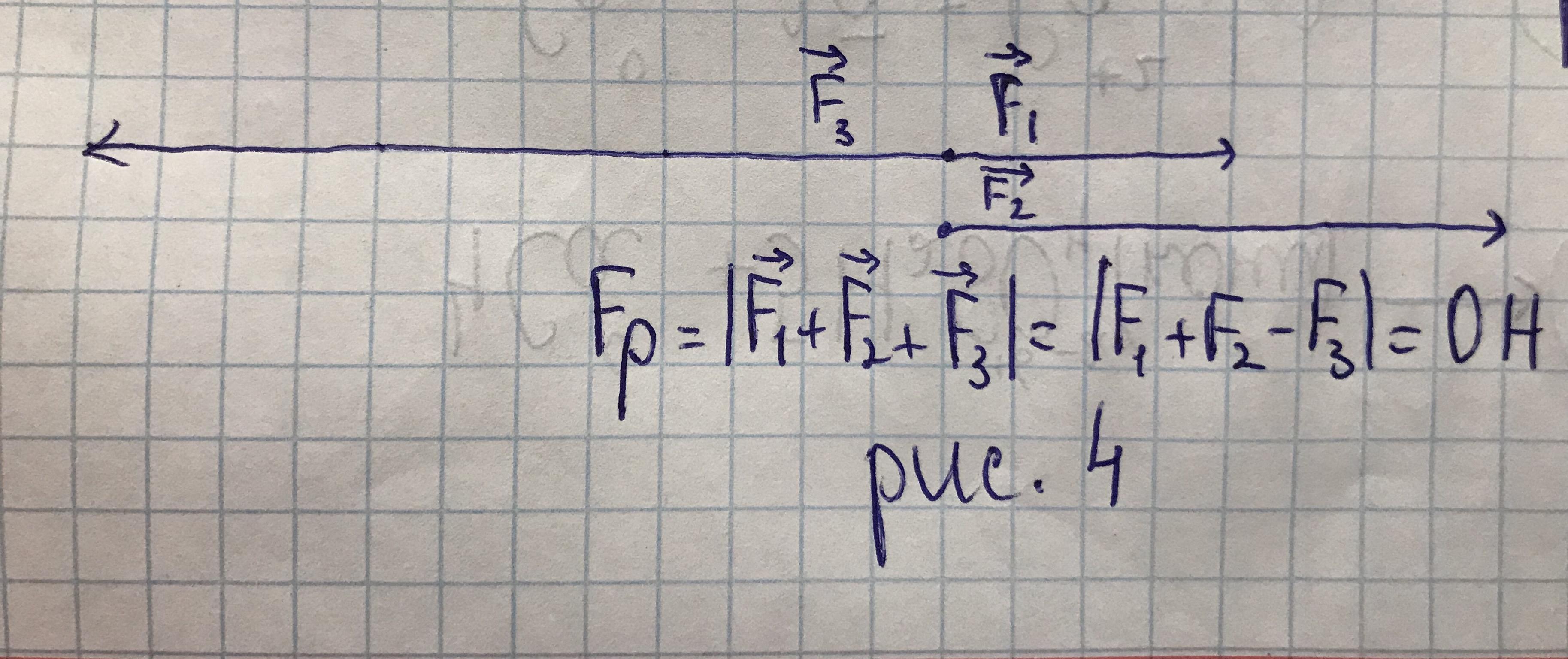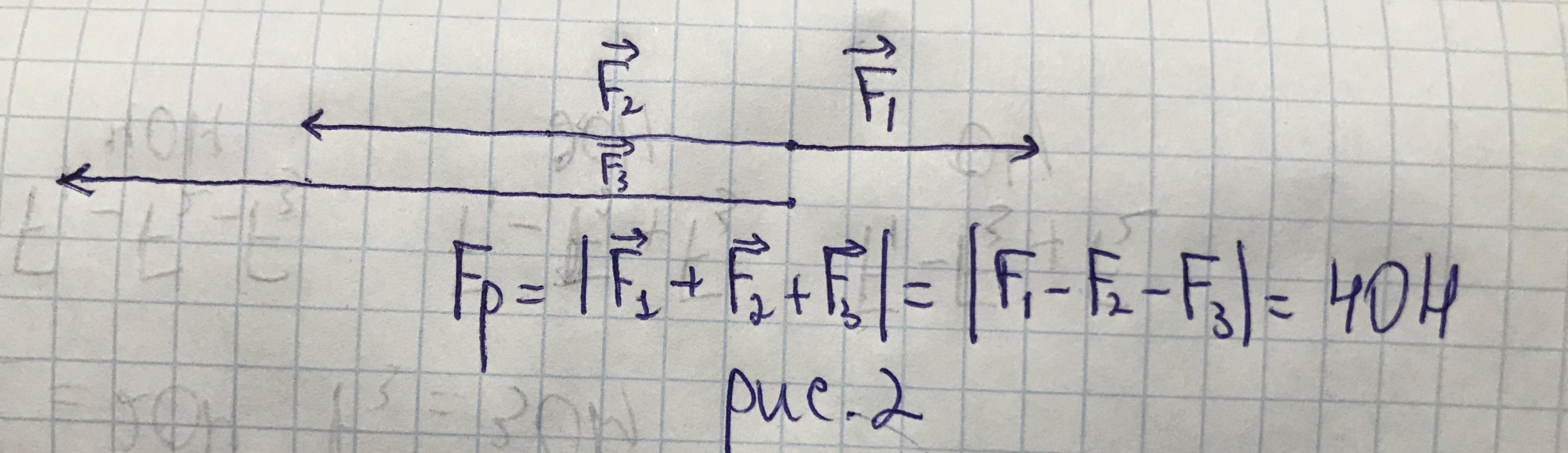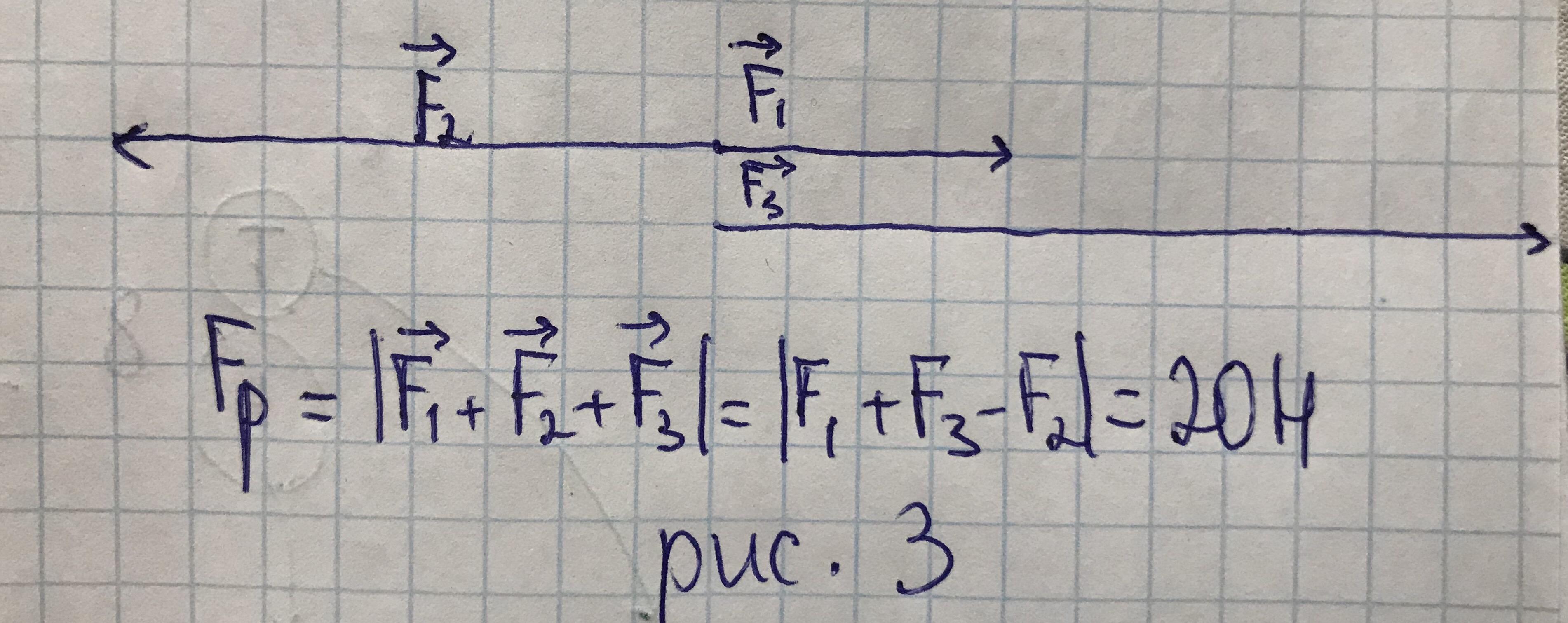 4)И последнее, пускай F1 и F2 будут направлены вдоль прямой, в одном направлении, а F3 будет им противоположный. Тогда, Fp=abs(F1+F2-F3)=0H