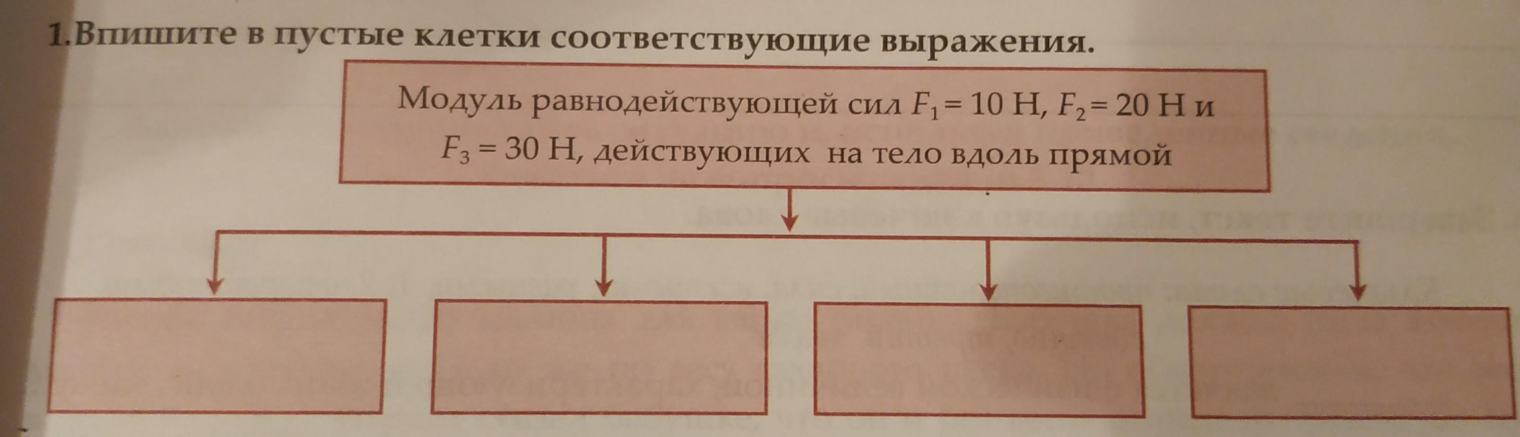 1)Предположим, что все векторы однонаправленные. Тогда Fр=abs(F1+F2+F3)=60Н. Это можна вписать в первую клетку в таблице.