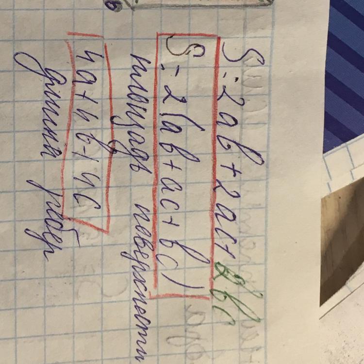 Две прямоугольный параллелепипед длина которого равна 6 см ширина 9см высота 4см найти :сумму рёбер и площадь поверхности(на фото пример как записывать)