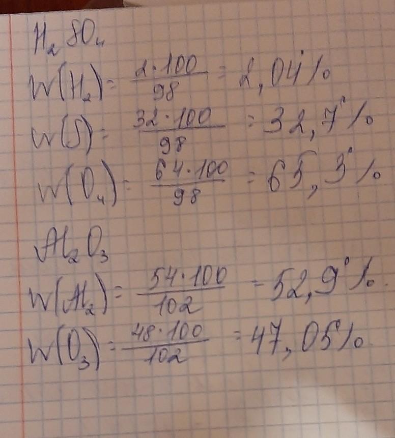 1. Определите массовые доли химических элементов в серной кислоте Н2SO4 и выразите их в процентах. 2. Определите массовые доли химических элементов в оксиде алюминия Al203, и выразите их в процентах. 3.Определите массовую долю кристаллизационной воды в дигидрате хлорида бария ВаCl2•2H2О. процентах