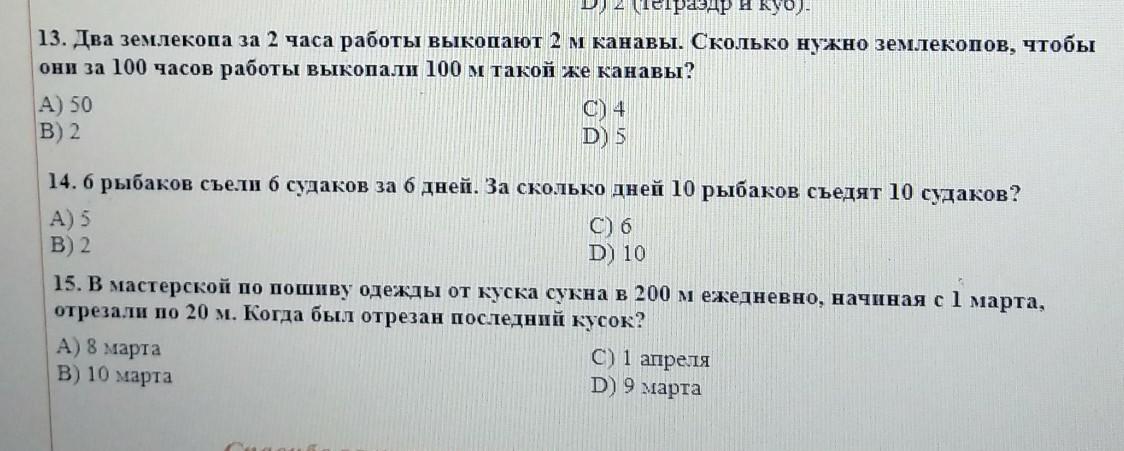 Ответ: 13-B; 14-D; 15-B.