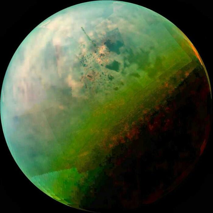 думаю, що найбільше підходить Титан, т.щ. там виявили атмосферу, метанові річки,моря і озера, також є лід.