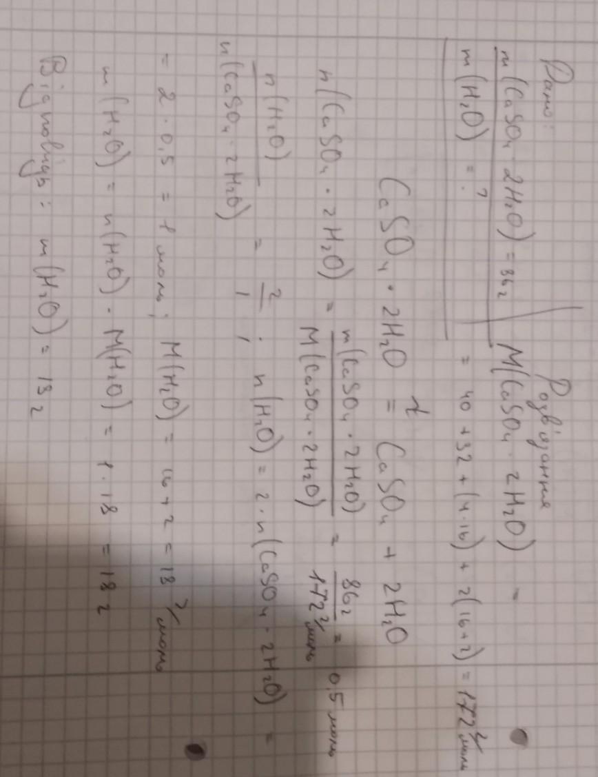 У промисловості будівельний гіпс добувають випалюванням природного гіпсу, який внаслідок цього зневоднюється. Обчисліть масу (г) кристалізаційної води у природному гіпсі масою 86 г.