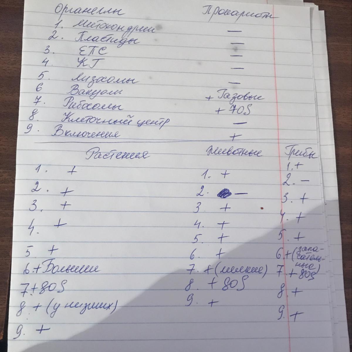 Можно ещё дописать различия в клеточных стенках (но это не органелла)