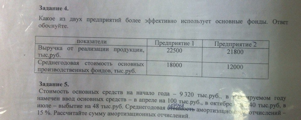 Ответ: Предприятие 2 более эффективно использует основные фонды, т.к. в расчете на каждую вложенную в основные средства тысячу рублей производится продукции на 1820 руб.