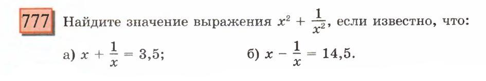 >>>Если найти квадрат суммы (x+1/x), то мы получим х^2+2*х*(1/х^2)+1/х^2=х^2+1/х^2+2. Аналогично с вторым примером(только там использовать формулу квадрат разницы двух чисел). На этом и обосновывается номер