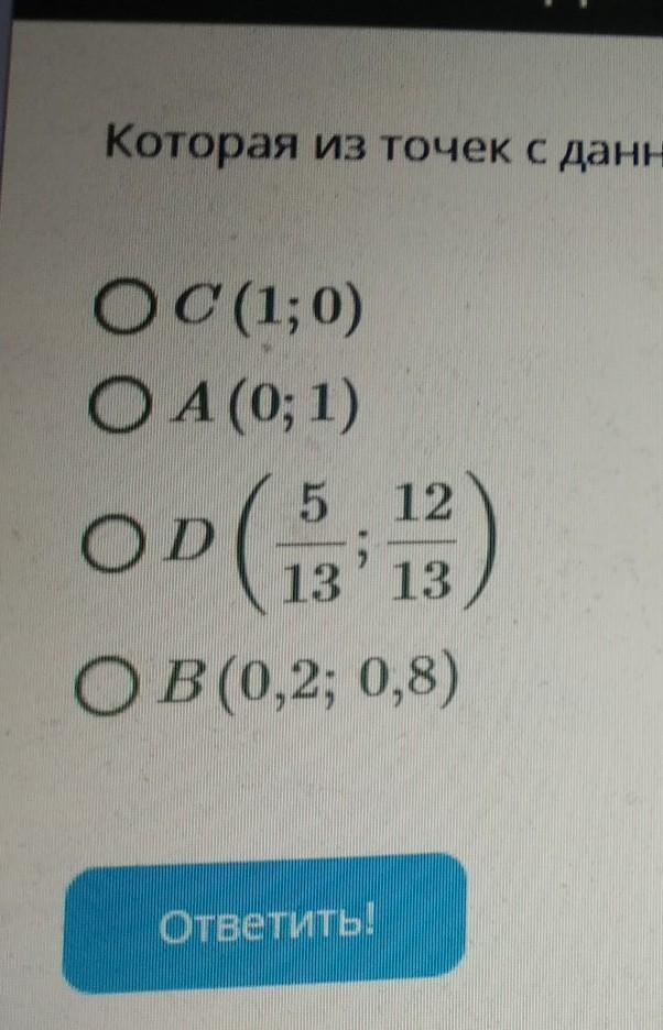 ПОМОГИТЕ ПОЖАЛУЙСТА ОСТАЛСЯ ЧАС! Которая из точек с данными координатами не находится на единичной полуокружности?