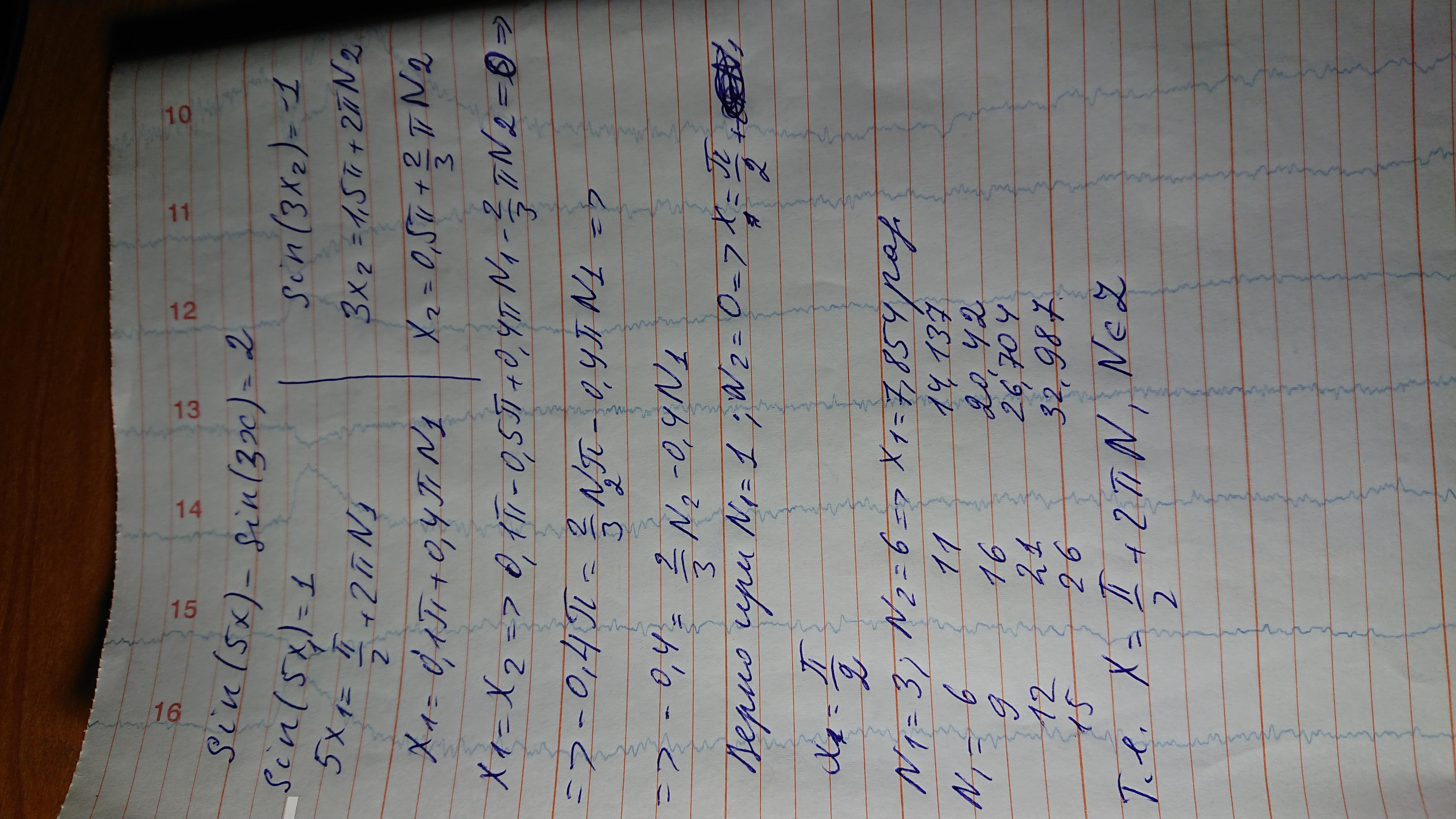 Ответ: решение на фото. Значения синуса не могут превышать 1 и быть меньше -1. Поэтому суммарное значение, равное 2, можно получить только если sin(5*x)=1, sin(3*x)=-1. Именно этот вариант рассматривается в решении. Данное решение является единственным и других решений не существует.