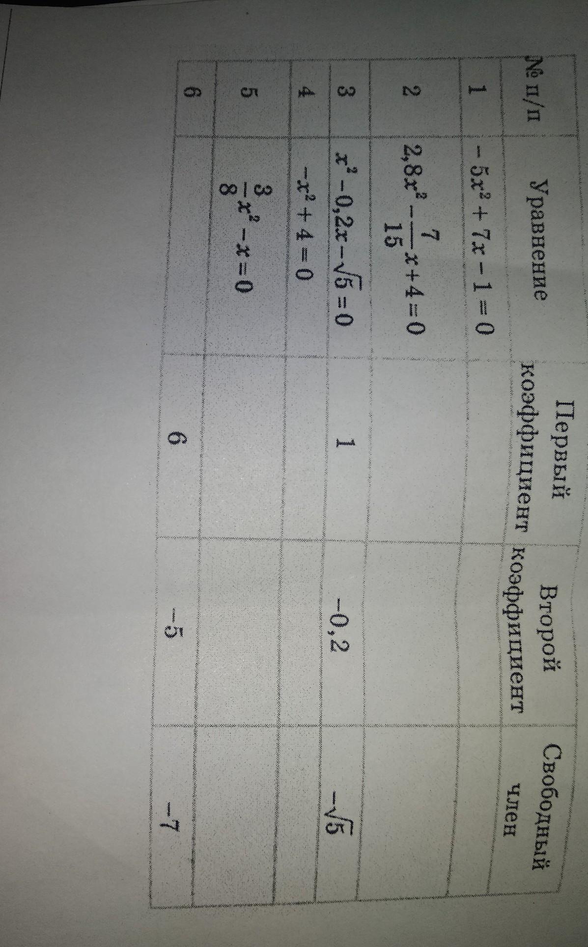 Первый коэффициент при x^2, второй при x, третий - свободный член
