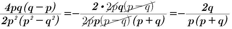 (4pq(q-p))/(2p²(p²-q²))=(-2q(p-q))/(p(p-q)(p+q))=(-2q)/(p(p+q))=(-2q)/(p²+pq)