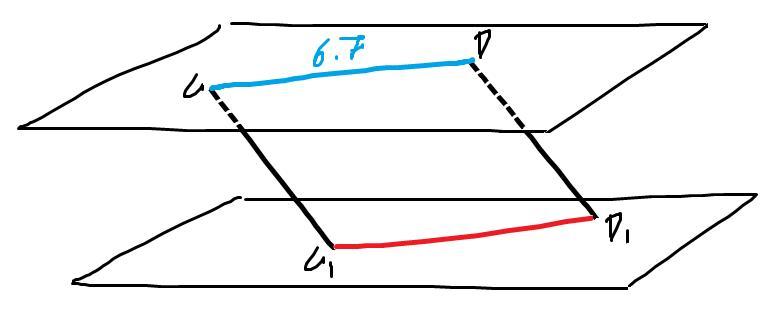 Даны две параллельные плоскости. Через точки С и Д одной из плоскостей проведены две параллельные прямые до пересечения в точка С1 и Д1. Найдите С1 и Д1, если СД = 6,7 см (Ответ обоснуйте)