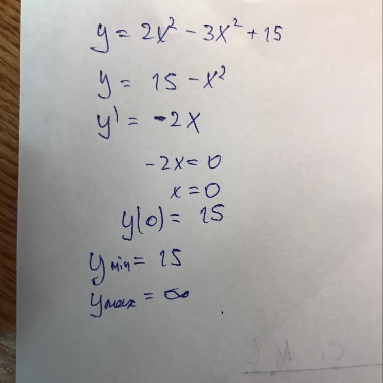 Находим производную минимальное значение 15, а максимальное безконечность