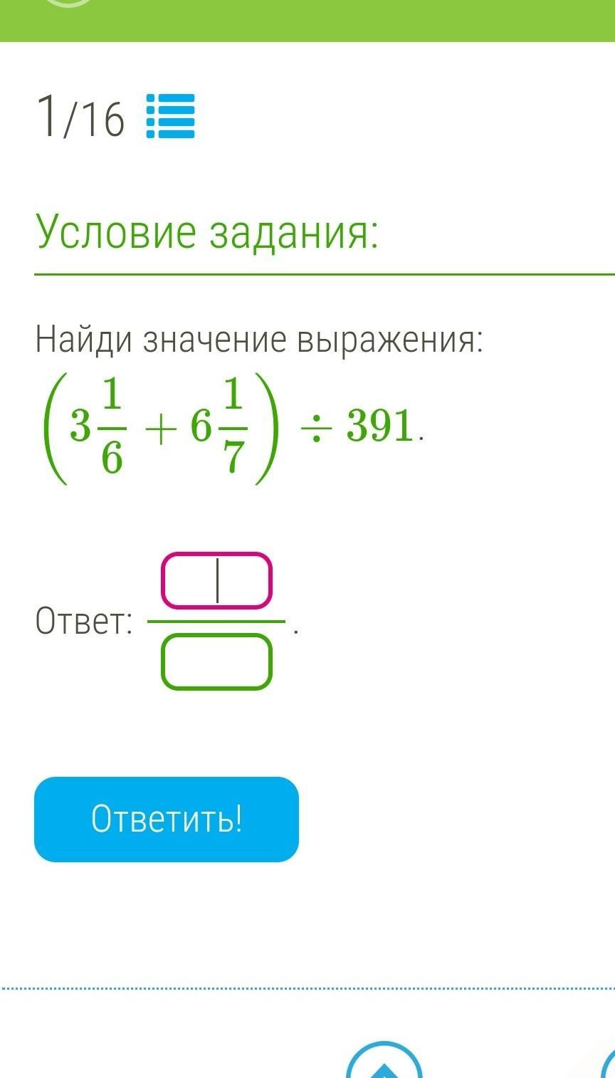 ((3+6)+(1/6+1/7))*1/391=9 13/42*1/391=391/42*1/391=1/42