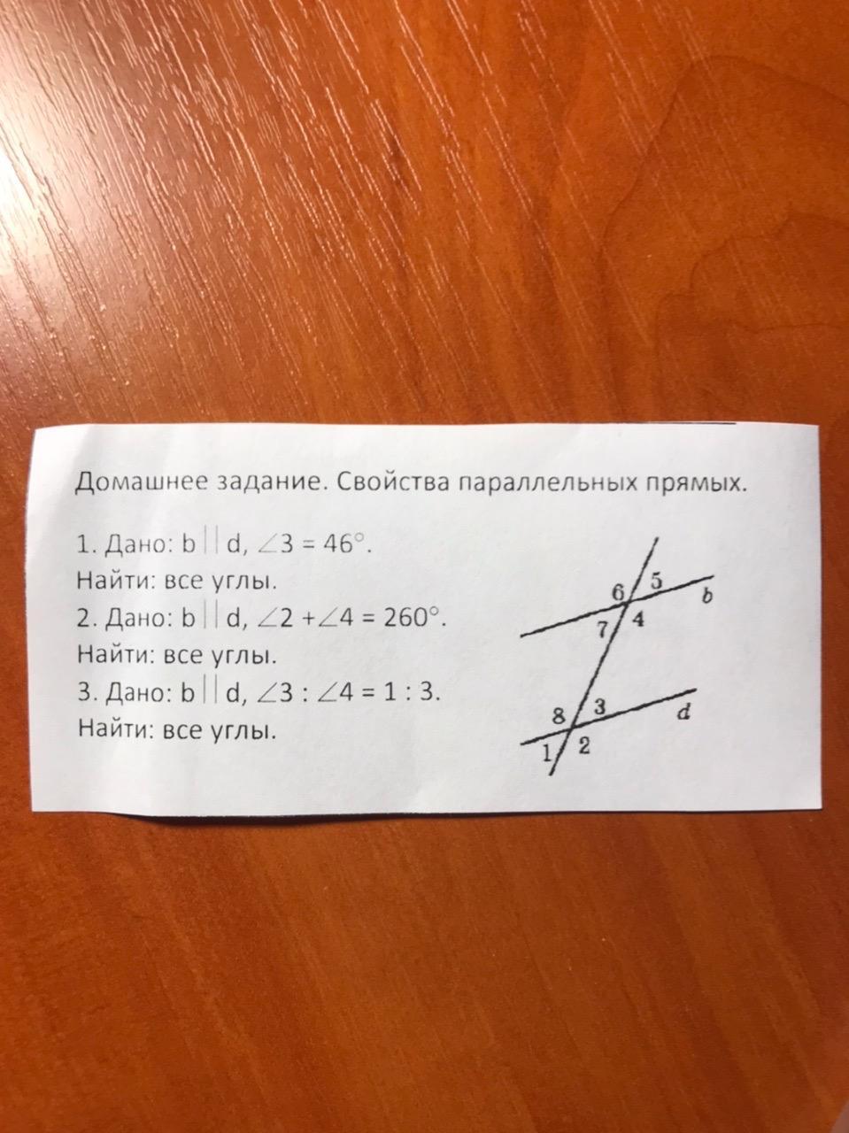 Ответ. 1=3=5=7=46°; 2=4=6=8=134°