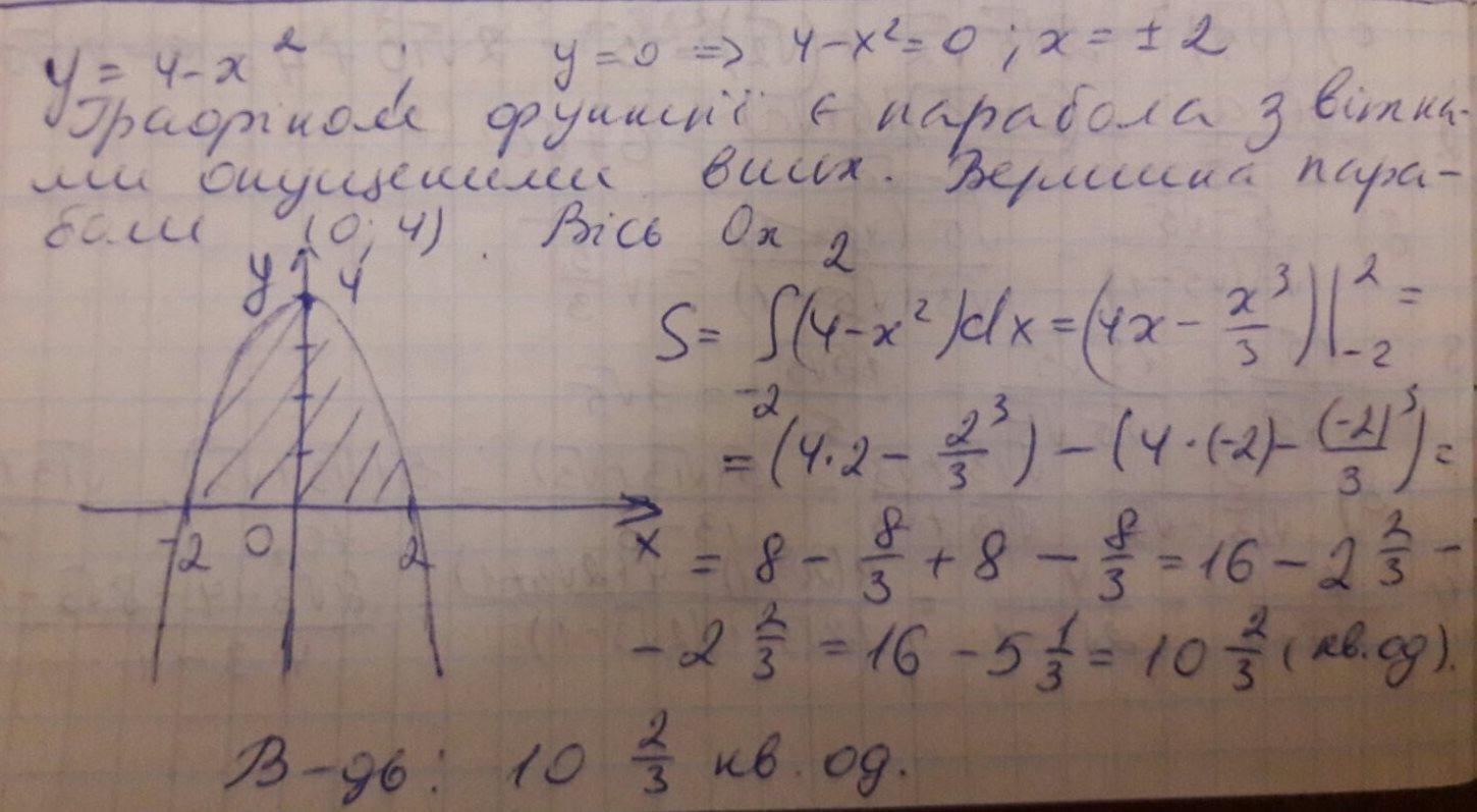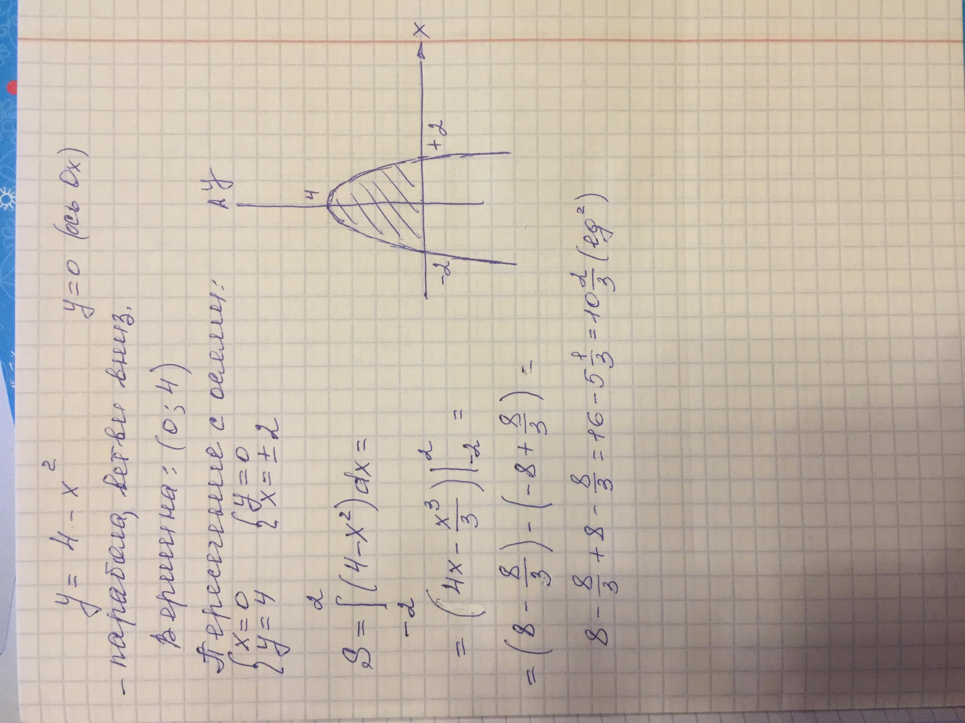 Найти площадь фигуры ограниченая параболой 4-х^2 и осью абсцисс, дам много балов , с рисунком и полным объяснением спасибо
