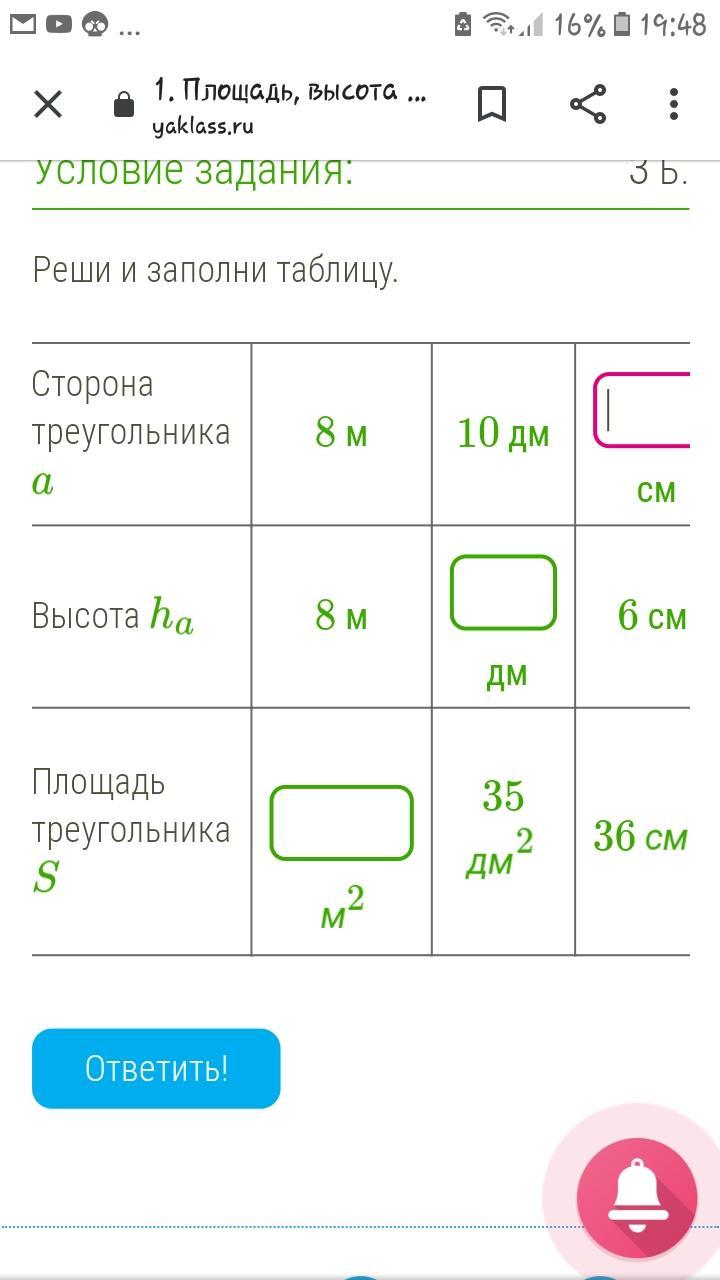 Площадь треугольника (1 столбец) = 1/2 × 8×8 = 32 м²
