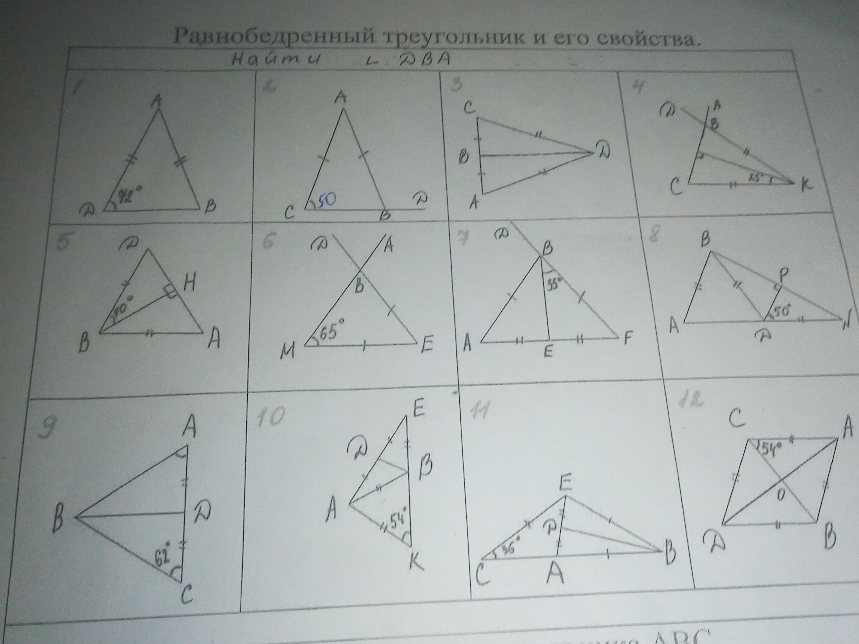 Равнобедренный треугольник и его свойства, с решением (хотя бы несколько треугольников)