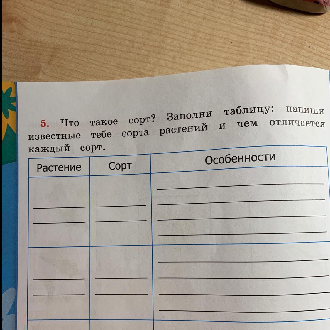 5. Что такое сорт? Заполни таблицу: напиши
