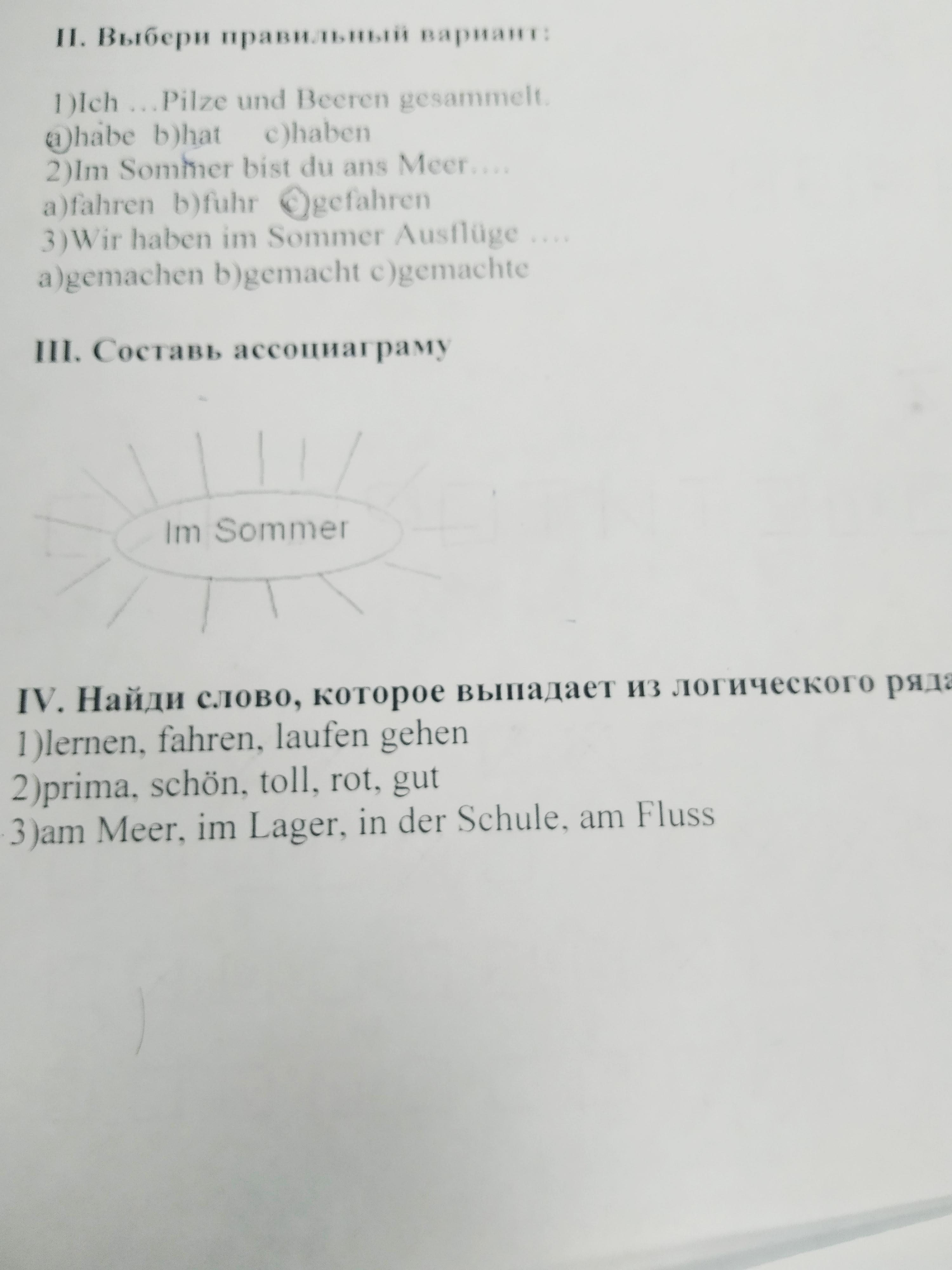 1) Ich a) habe Pilze und Beeren gesamelt.