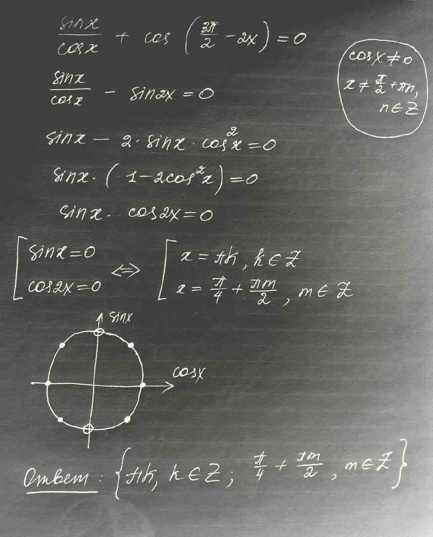 Где я допустил ошибку при решении тригонометрического уравнения? Правильный ответ: x = pi/4 + pi*k / 2, k принадлежит целым числам.