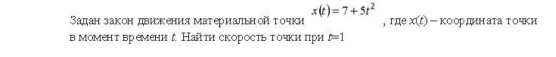 v(t) = (7 + 5t²)' = 5(t²)' + 7' = 5 · 2t + 0 = 10t.