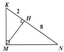 Розглянемо ΔKHM та ΔNHM. За умовою задачі MN⊥KN, тоді ΔKHM та ΔNHM-прямокутні (∠H=90°). За теоремою Піфагора: