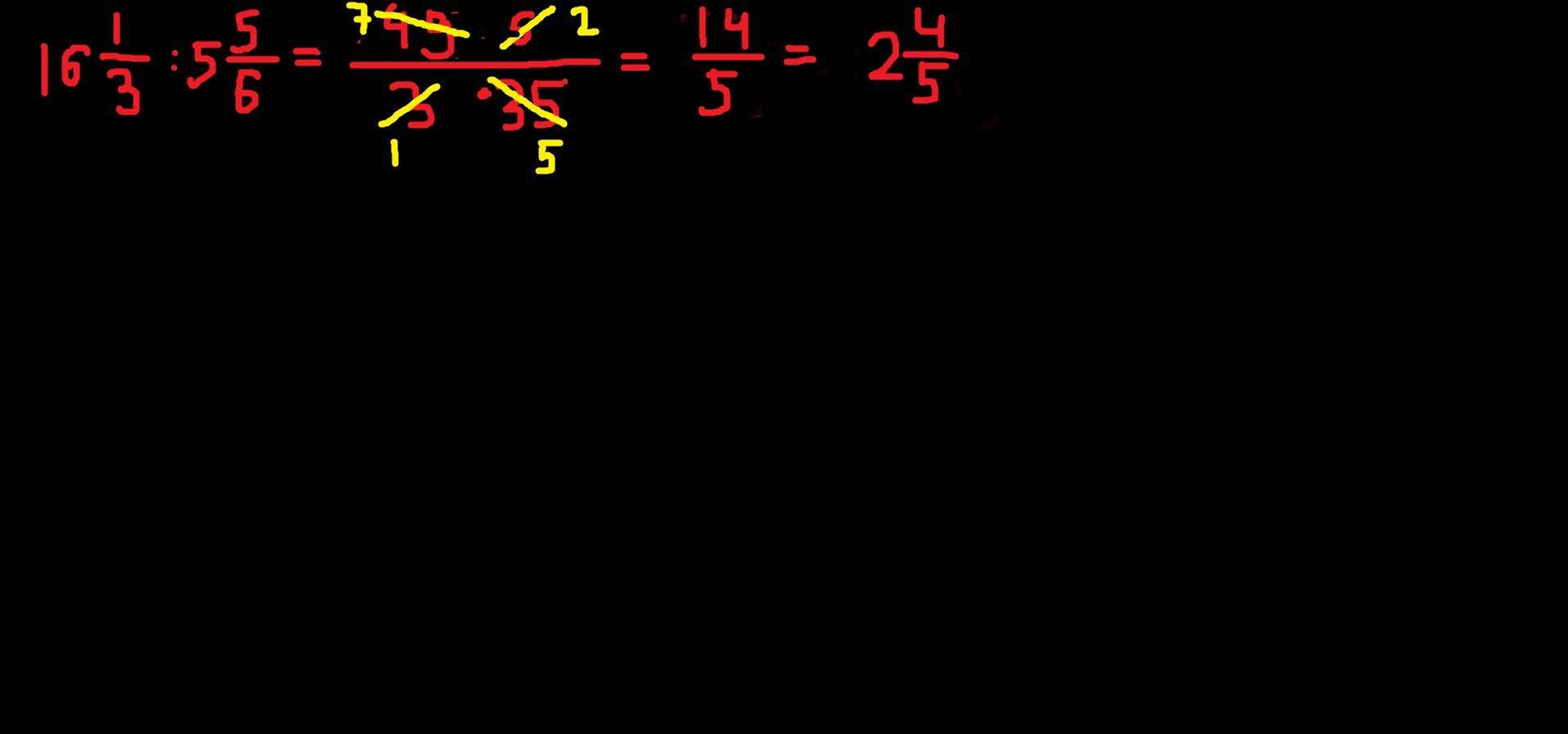 Нужна помощь помогите. 16 1/3:5 5/6. Там сначала дроби нужно превратить в неправильную дробь. И распишите на что вы сокращаете каждую дробь