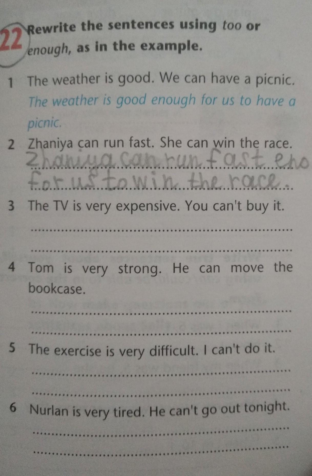 5. The exercise is too difficult for me to do it.