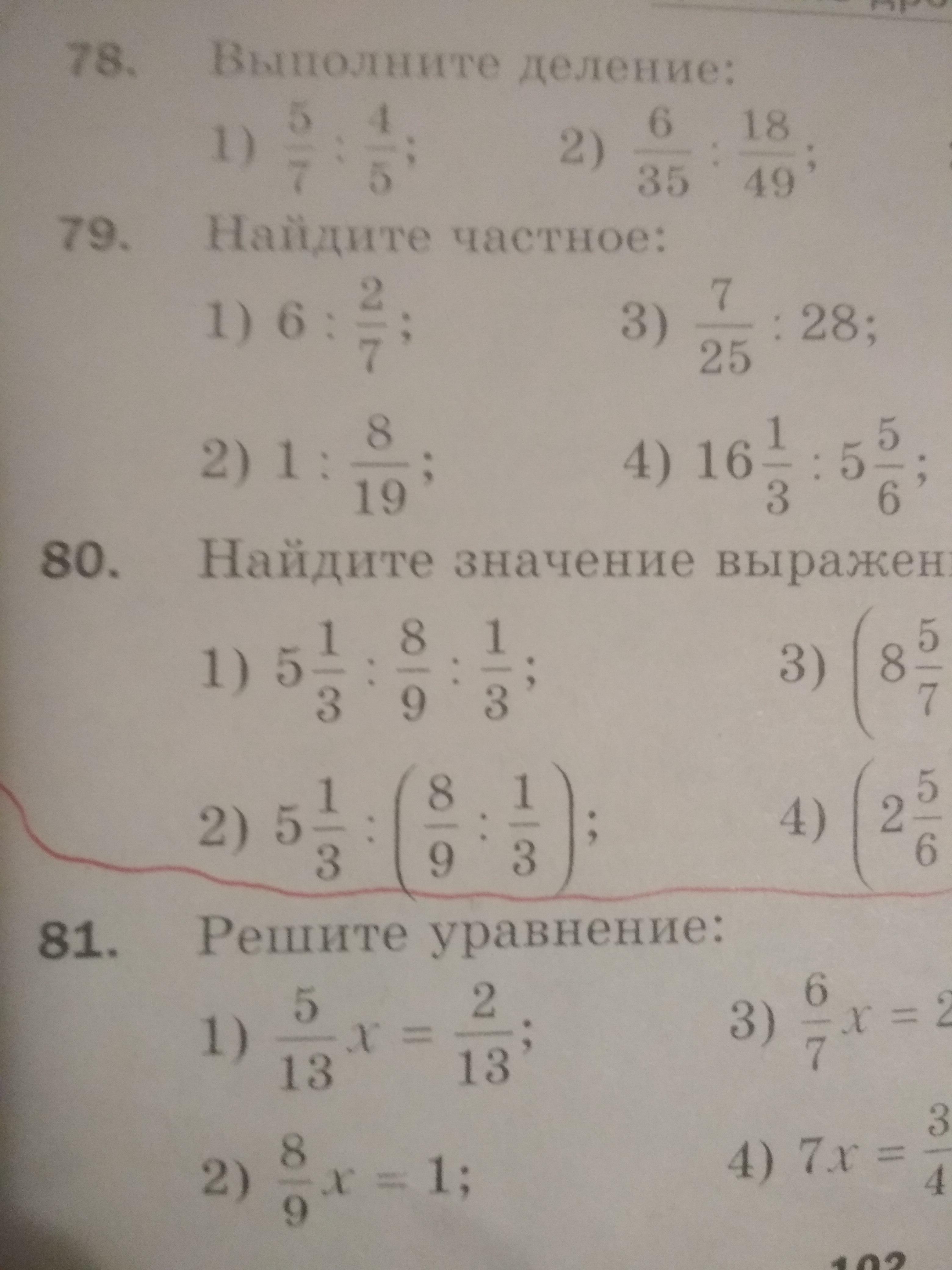Помогите решить первый пример. Я неуверена что решила правильно. Также распишите по действиям. И также распишите на ,что сокращали дроби. 80 номер 1 пример.