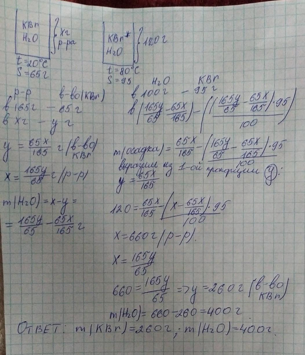 массой 120 г. Ѕ(20°C) = 65, S(80°C) = 95.